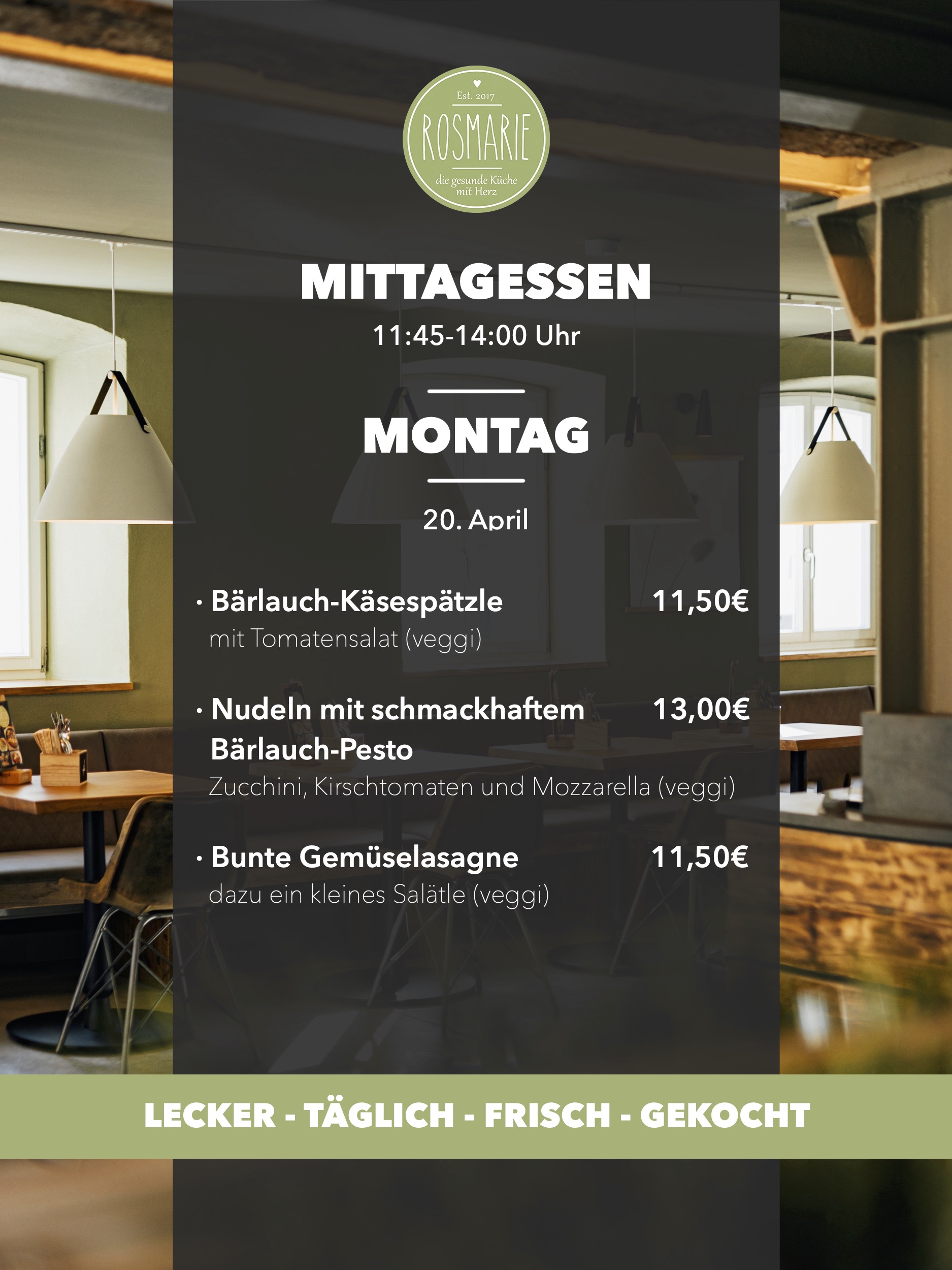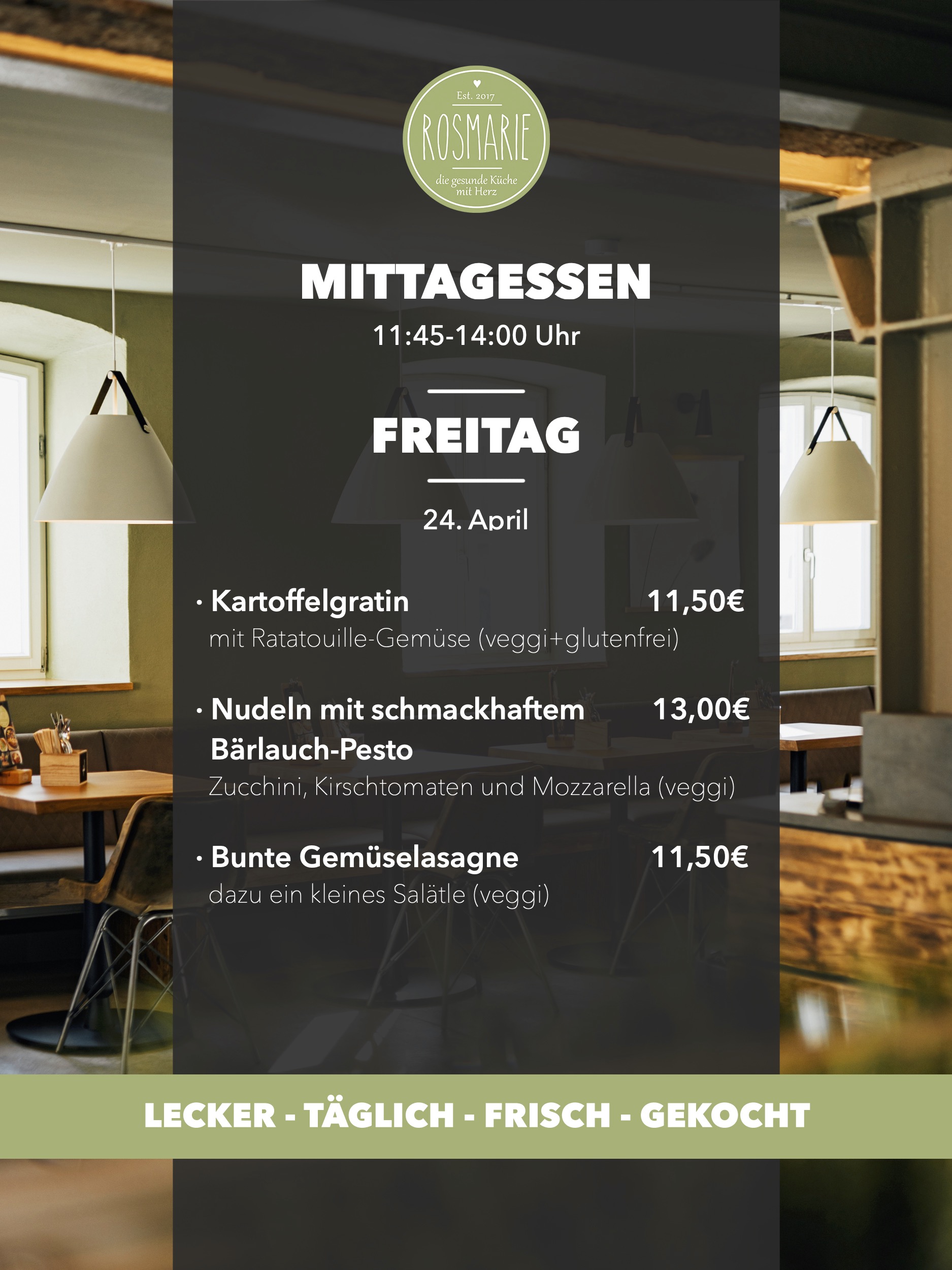 Alle Tagesessen und Gerichte sind auch zum mitnehmen erhältlich!