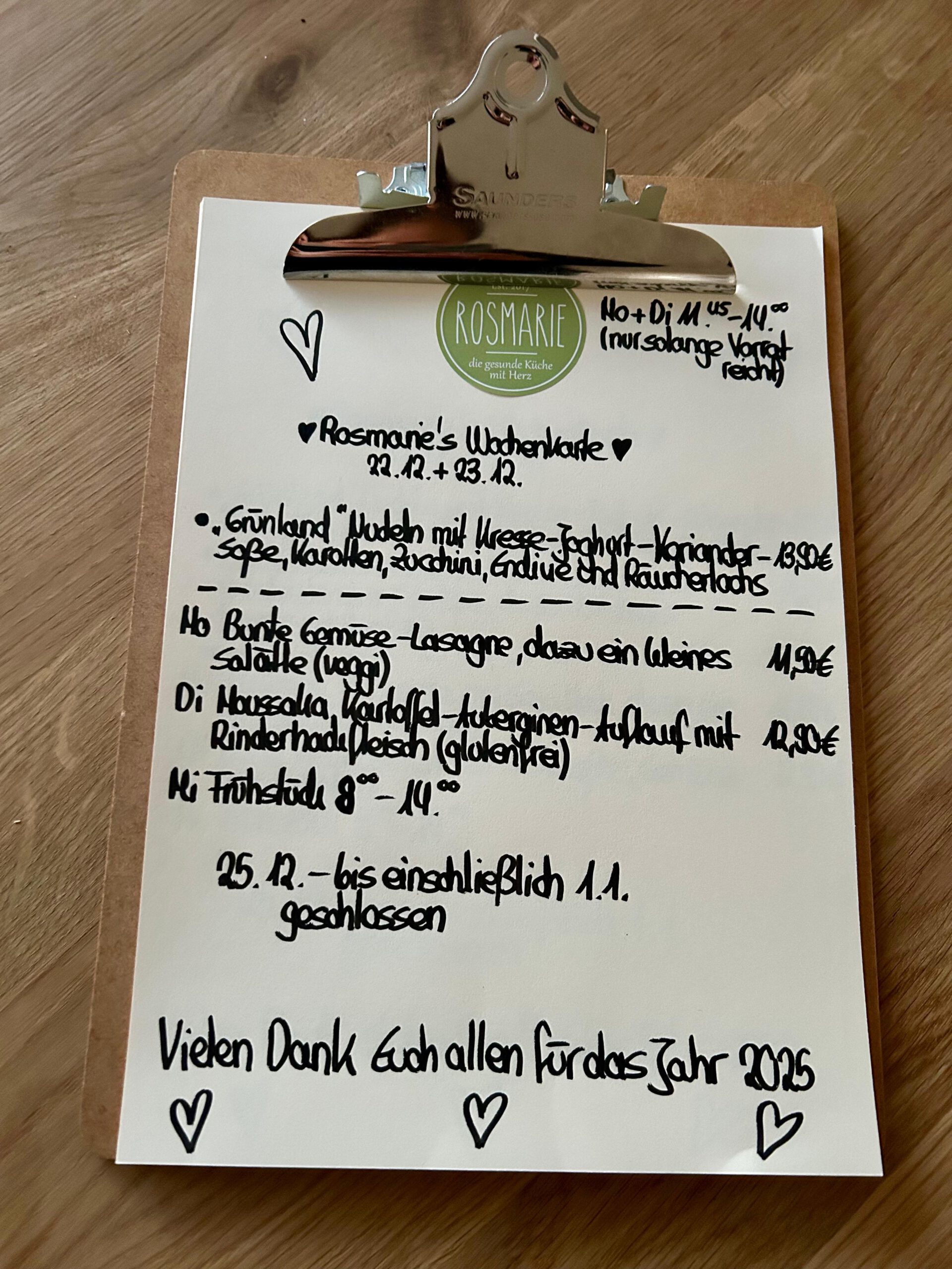 Alle Tagesessen und Gerichte sind auch zum mitnehmen erhältlich!