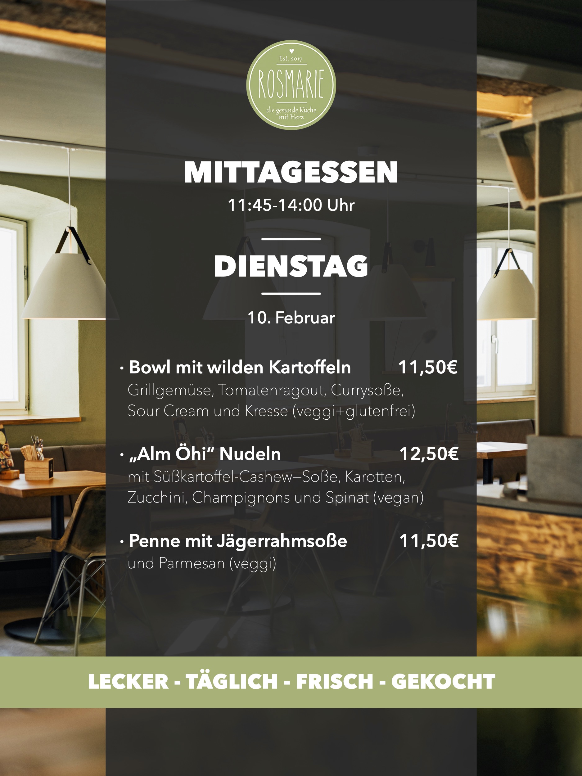 Alle Tagesessen und Gerichte sind auch zum mitnehmen erhältlich!